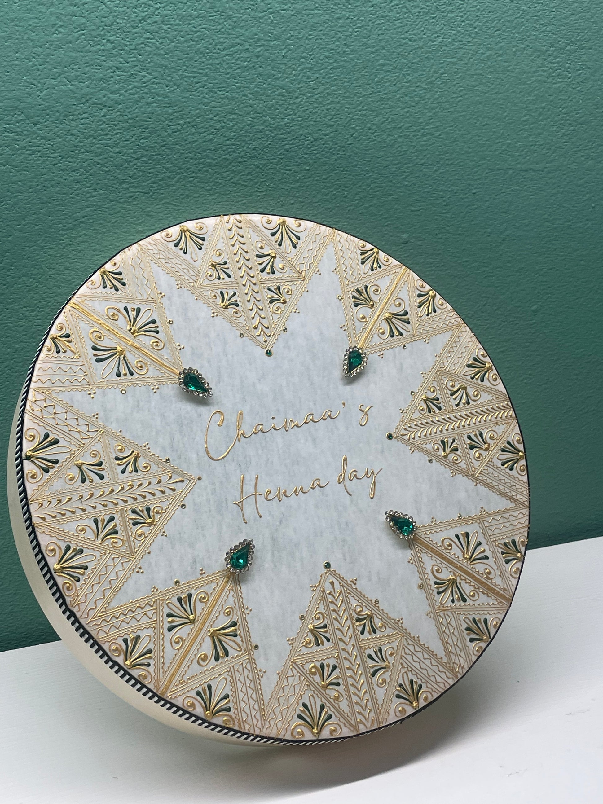 Bendir decorato a mano, personalizzato a seconda del tema e del design scelto.