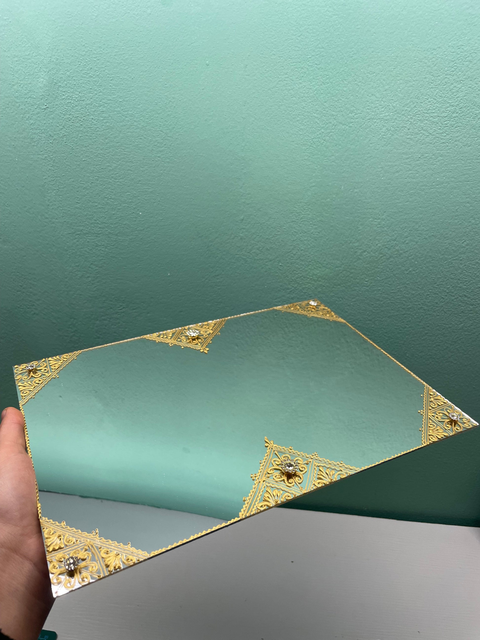 Vassoio a specchio per candele decorato a mano in base al tema e design scelti delle candele